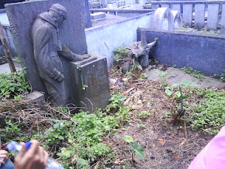 Maka Minggu (12/02/12) ini jadi ngaleut kedua kami dengan agenda: JELAJAH MAKAM PANDU. Wow apa yang menarik dari sebuah makam? Pernahkah kamu membayangkan makam sebagai museum yang menyimpan kekayaan budaya dan sejarah? Kalau selama ini kamu sekadar tahu bahwa pemakaman terdiri dari makam-makam yang berjajar dan menghadap satu arah, berupa gundukan atau kadang-kadang diperkeras, pemakaman kali ini mempersembahkan makam-makam yang beda. Kamu bisa lihat sepasang makam berhadapan, makam dengan pot tanaman (yang mungkin saja sebenarnya tempat dupa), makam orang Batak, Nias, Maluku, China, Belanda, Jerman, Italia, Prancis, Amerika, penganut Freemason, sampai makam pejuang, makam yang belum ada isinya, makam yang menyerupai pura mini, makam dengan gambar traktor di nisannya, makam berupa laci, hingga kerangka tak beridentitas. Beberapa makam bahkan menampilkan potret orang yang dimakamkan semasa hidup. Tapi itu belum semua. Dari apa yang tertera di nisan saja, ada banyak informasi yang bisa kita gali.