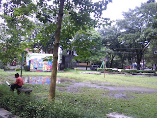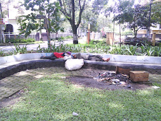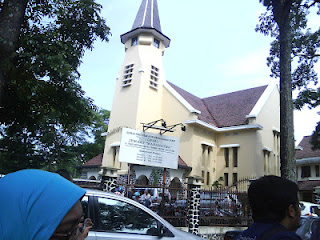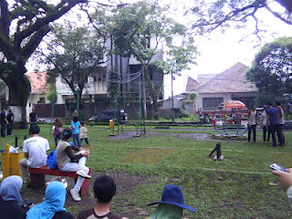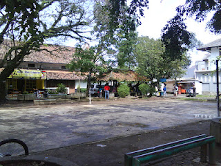 Di pinggir lapangan ini mobil jemputan saya biasa nongkrong. Di seberang sana adalah deretan toko China, namun ternyata sudah ada yang bersalin rupa. |