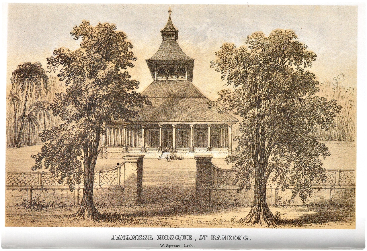 Yang paling dikenang orang dari Mesjid Agung Bandung adalah bentuk atapnya yang bersusun tumpang tiga dan meruncing di puncaknya seperi tampak dalam foto atas. Karena itulah mesjid ini mendapatkan julukannya yang legendaris, Bale Nyuncung (lancip). Gambar ini adalah hasil perombakan Mesjid Agung yang keempat kalinya sejak didirikan pada tahun 1812 (atau 1810?). Awalnya berupa bangunan bambu sederhana saja dengan atap rumbia. Pada tahun 1825 diperbaiki menjadi bangunan kayu. Tahun 1850 bangunan mesjid sudah menggunakan tembok sebagai fondasinya. Bangunan inilah yang dilihat dan kemudian dibuatkan lithografinya oleh W. Spreat. Gambar karya W. Spreat dipakai sebagai ilustrasi buku catatan perjalanan karya seorang Bengal yang pernah menjalani kawasan Malaka dan Pulau Jawa pada tahun 1852. Tahun 1930 Mesjid Agung mendapatkan tambahan sebuah serambi depan dengan menara pendek di sisi kanan dan kirinya seperti yang tampak di atas.