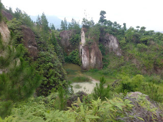 Kami menelusuri dua titik di wilayah Kendan ini; titik penggalian batu obsidian di lereng Bukit Kendan dan petilasan Resiguru Manikmaya di puncak Bukit Kendan. Di lereng Bukit Kendan kami lebih banyak melihat pemandangan seperti foto di atas dan bebatuan obsidian. Berbagai macam bentuk batuan obsidian, dari yang sangat kecil sampai sangat besar, dapat ditemukan di sini. Bila memiliki keberanian cukup, kalian bisa naik ke atas tebing seperti yang lelaki hitam manis satu ini lakukan di tengah gundah gelisahnya dia menunggu jodoh.