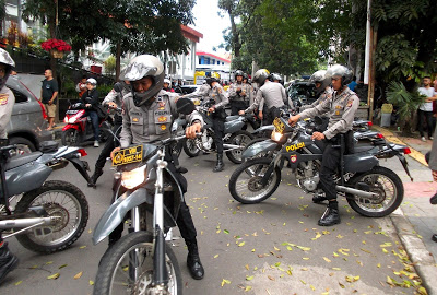 Sedari siang, sekira pukul 14.00 suasana di sekitar IFI cukup tegang. Ratusan aparat keamanan yang berjaga dikagetkan oleh kira-kira 20 rombongan kendaraan bermotor yang melintas di Jl. Purnawarman (depan IFI) sambil menyalakan knalpot bising. Mereka kemudian masuk ke pelataran parkir BEC (Bandung Electronic Centre), dan sesaat berselang keluar lagi menuju jalan Jl. Purnawarman sambil terus menggeber gas yang menimbulkan suara knalpot bising. Polisi yang berjaga akhirnya menangkap dan membawa mereka ke kantor dengan truk. Motor yang mereka pakai dibawa serta oleh para petugas.