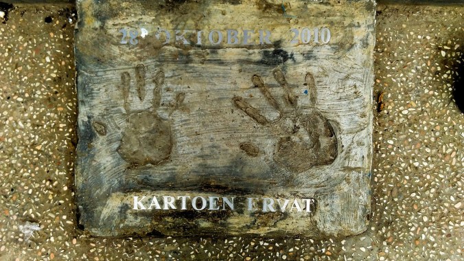 Setelah masalah banjir teratasi, pembangunan Blok Tempe mulai menyentuh aspek fisik kampung. Salah satunya dengan keberadaan ruang publik berbentuk Bale yang berdiri pada tahun 2010 dan menjadi tempat kami berbincang saat itu. Sepasang cap tangan yang merupakan cap tangan dari Kang Emil diletakkan di bagian depan Bale. Di Bagian bawah cap tangan tersebut tertulis Kartoon Ervat, pada awalnya saya kira itu merupakan nama seorang asing yang meresmikan Bale tersebut, namun ternyata Kartoon Ervat itu adalah sebuah singkatan dari Karang Taruna Erte Ovat.