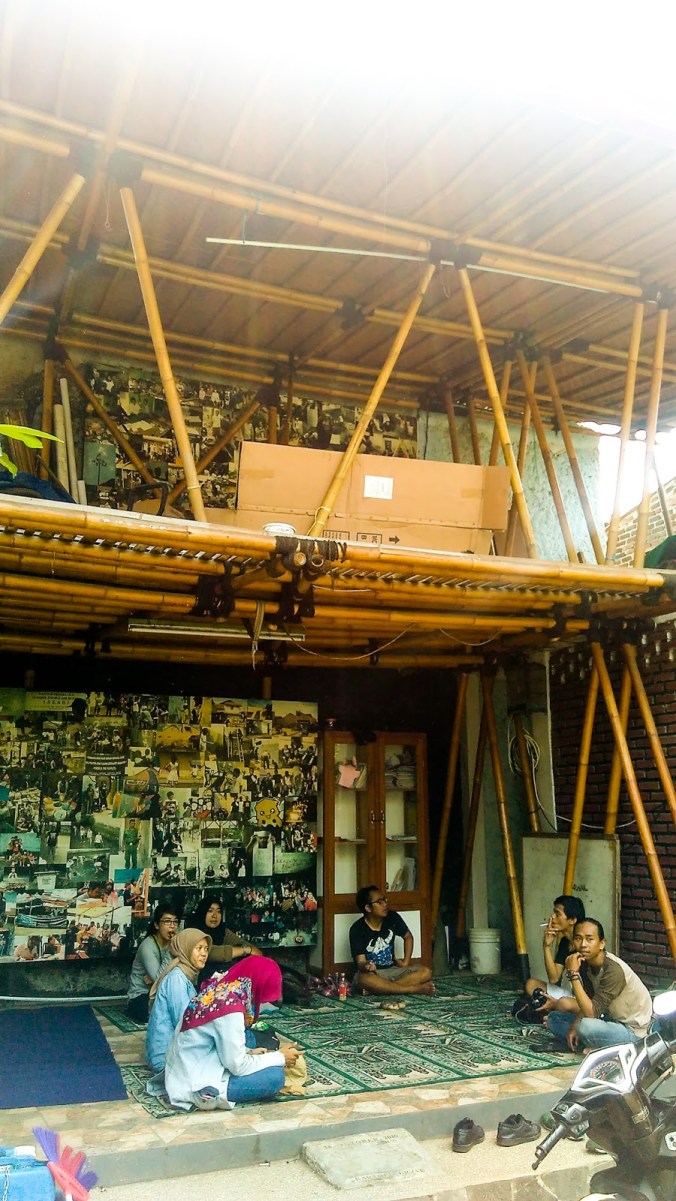 Sesampainya di Bale, kawan-kawan tampak sudah bersantai di area Bale yang sangat nyaman dan luas. Bale yang terletak di RT 04 ini terbuat dari bambu dengan latar belakang puluhan foto yang menunjukkan berbagai aktivitas serta tamu yang telah berkunjung. Pelataran Bale yang merupakan sebuah taman, terlihat sangat tertata rapi dan bersih. Kehadiran sebuah ayunan di sisi sebelah kanan taman mempercantik keberadaan Bale yang terletak di tengah-tengah gang sempit Blok Tempe.