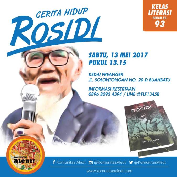 Untuk mengetahui hal-ihwal sosok Rosidi dan seperti apa cerita hidupnya bisa langsung datang aja besok ke @kedaipreanger pukul 13.15 WIB. Informasi lebih lanjut bisa langsung kontak nomor yang tertera di poster.