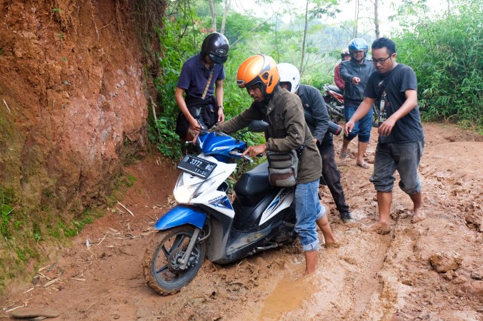 Kunjungan kami ke Kampung Adat Cikondang sebenarnya sudah selesai pukul 1 siang, namun karena rasanya sayang untuk langsung pulang begitu saja, kami memutuskan untuk melalui rute Gunung Tilu yang aduhai sampai menembus jalur perkebunan teh Pangalengan yang rupawan. Terhitung dua kali balikan kami mengitari rute Gunung Tilu, karena beberapa jalur yang kami tuju ternyata berujung buntu, dari jalan penuh batu hingga jalan berlumpur yang mengotori baju. Dua kali balikan hingga Cikondang pun terasa sudah sangat jauh di belakang. Dua kali balikan hingga Gunung Tilu pun menjadi Gunung Genep.
