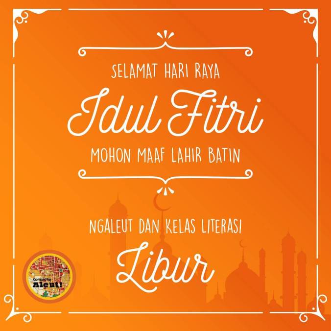 #InfoAleut: Selamat Hari Raya Idul Fitri 1438H! Juni 24, 2017 / KomunitasAleut! Komunitas Aleut mengucapkan selamat mudik dan merayakan Hari Raya Idul Fitri 1438H. Sampai jumpa di #KelasLiterasi dan #Ngaleut minggu depan š Bagikan ini: Klik untuk membagikan di Facebook(Membuka di jendela yang baru) Facebook Klik untuk berbagi di X(Membuka di jendela yang baru) X Klik untuk berbagi di WhatsApp(Membuka di jendela yang baru) WhatsApp Klik untuk mengirimkan email tautan ke teman(Membuka di jendela yang baru) Surat elektronik Suka Memuat... Related