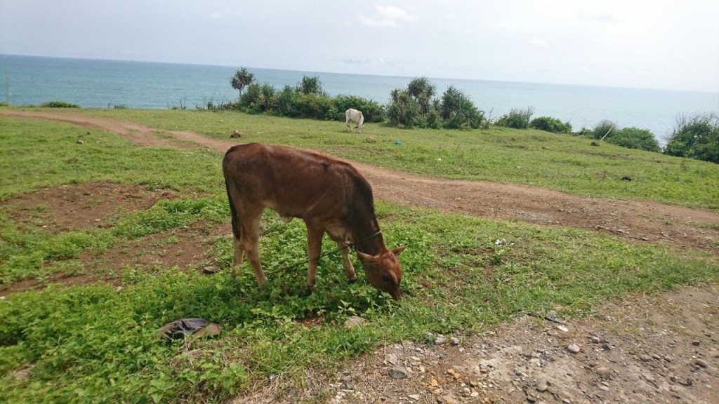 Dari Rancabuaya kami memotong jalan melewati tempat yang bernama Kandang Sapi (?). Diawali dengan tanjakan yang cukup curam, kemudian kami dihadapkan dengan jalanan berbatu dari awal hingga akhir daerah tersebut. Padang rumput yang luas dengan laut yang membentang di bawahnya, menjadi tempat yang cocok bagi hewan ternak untuk merumput dan melepas penat dari kandang-kandang mereka yang sempit. Hewan pun butuh refreshing hahaha.