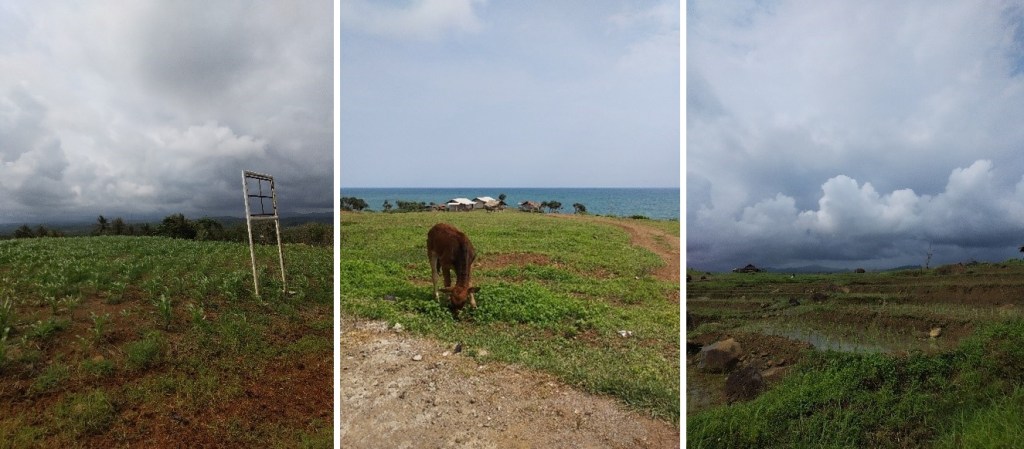Setelah merasa cukup menikmati suasana Pantai Rancabuaya, kami melanjutkan perjalanan dengan melalui jalan berbeda yang disebut Kandang Sapi. Di sini terdapat hamparan ladang yang ditanami oleh jagung dan padi. Ada banyak sapi ternak yang mungkin sengaja dibiarkan untuk merumput di situ.