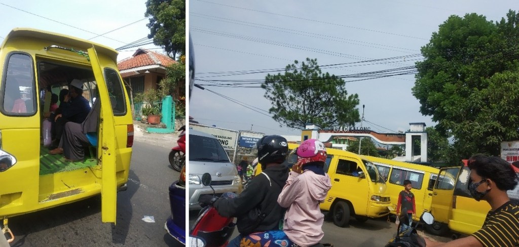 Di Pangalengan, aku menemukan hal menarik yaitu pada angkutan kota atau angkot yang model pintunya berbeda dengan angkot yang selama ini kulihat di sekitar kota Bandung. Angkot berwarna kuning dengan trayek Banjaran-Pangalengan ini pintunya terletak di bagian belakang mobil dan selalu dalam keadaan terbuka. Model pintu seperti itu membuatku berpikir apakah tidak bahaya untuk para penumpangnya? Apalagi dengan jalur Pangalengan yang relatif menanjak dan cukup curam. Entahlah.