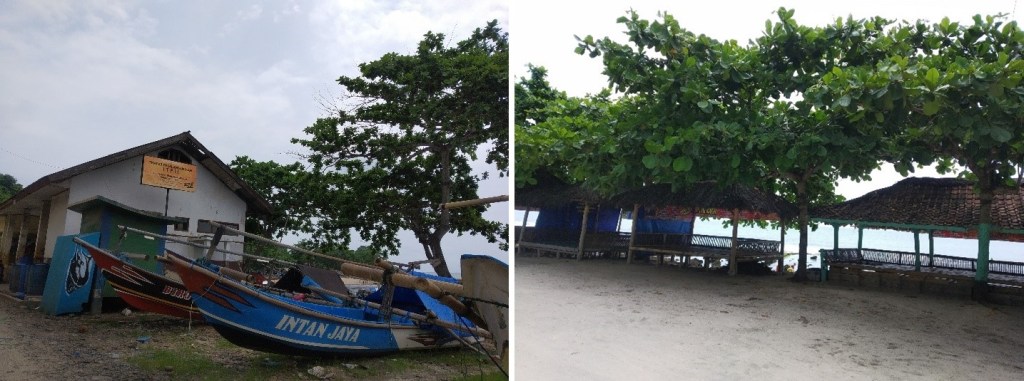 Memasuki area pantai, tampak saung-saung serta penginapan berjejer di pinggiran pantai. Suasana pantai Rancabuaya saat itu tidak telalu ramai. Saung-saung sepi pengunjung. Kami melewati jajaran perahu nelayan dan Tempat Pelelangan Ikan (TPI) yang selalu ada di kawasan pantai. TPI di Pantai Rancabuaya ini bernama TPI Palabuan Ciliab. Ukurannya tidak terlalu besar. Di depan TPI ini juga terlihat perahu-perahu nelayan yang sedang parkir.