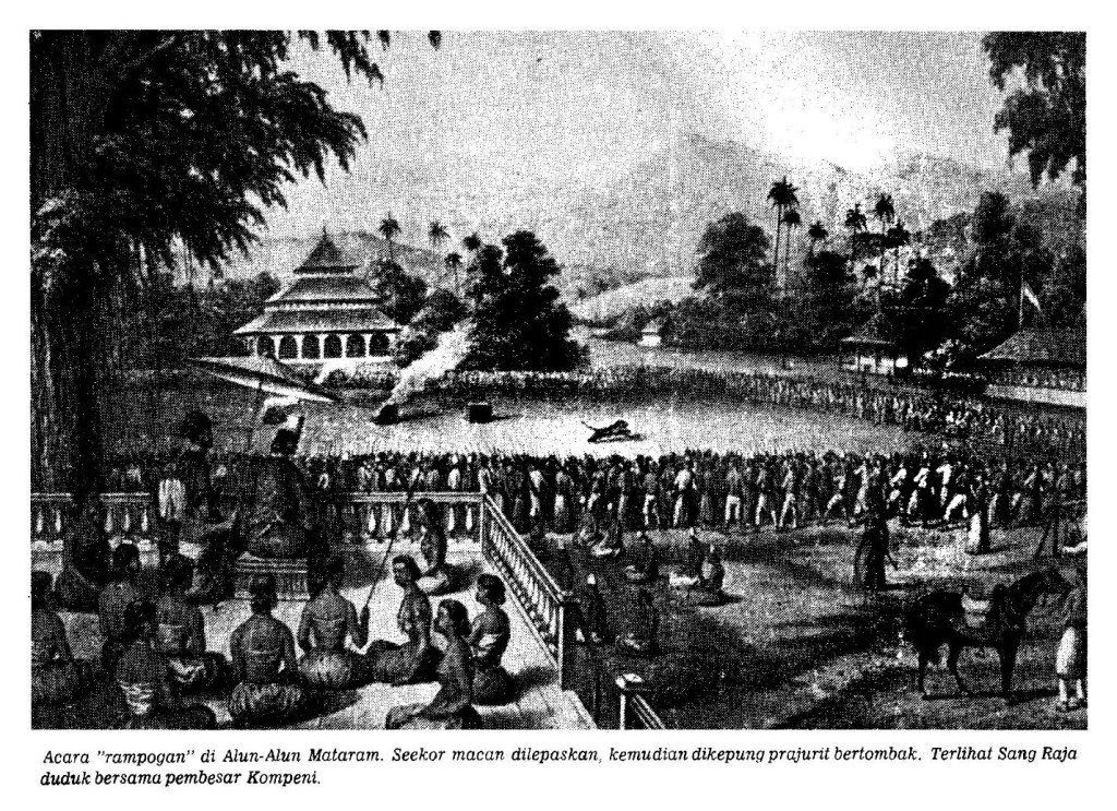 Untuk menjelaskan lebih lanjut mengenai makna awal penamaan Alun-alun, Haryoto Kunto mengutip keterangan dari buku Geschiedenis van Indonesia (H.J. de Graaf, 1949) yang mengisahkan suatu kegiatan rutin di Mataram yang disebut rampogan, sebuah tontonan yang terbuka untuk disaksikan oleh rakyat banyak, yaitu pertarungan sengit antara para prajurit Mataram, dengan perlengkapan tombak dan berbaris membentuk pagar, dengan seekor harimau lapar yang dilepas di tengah lapang.