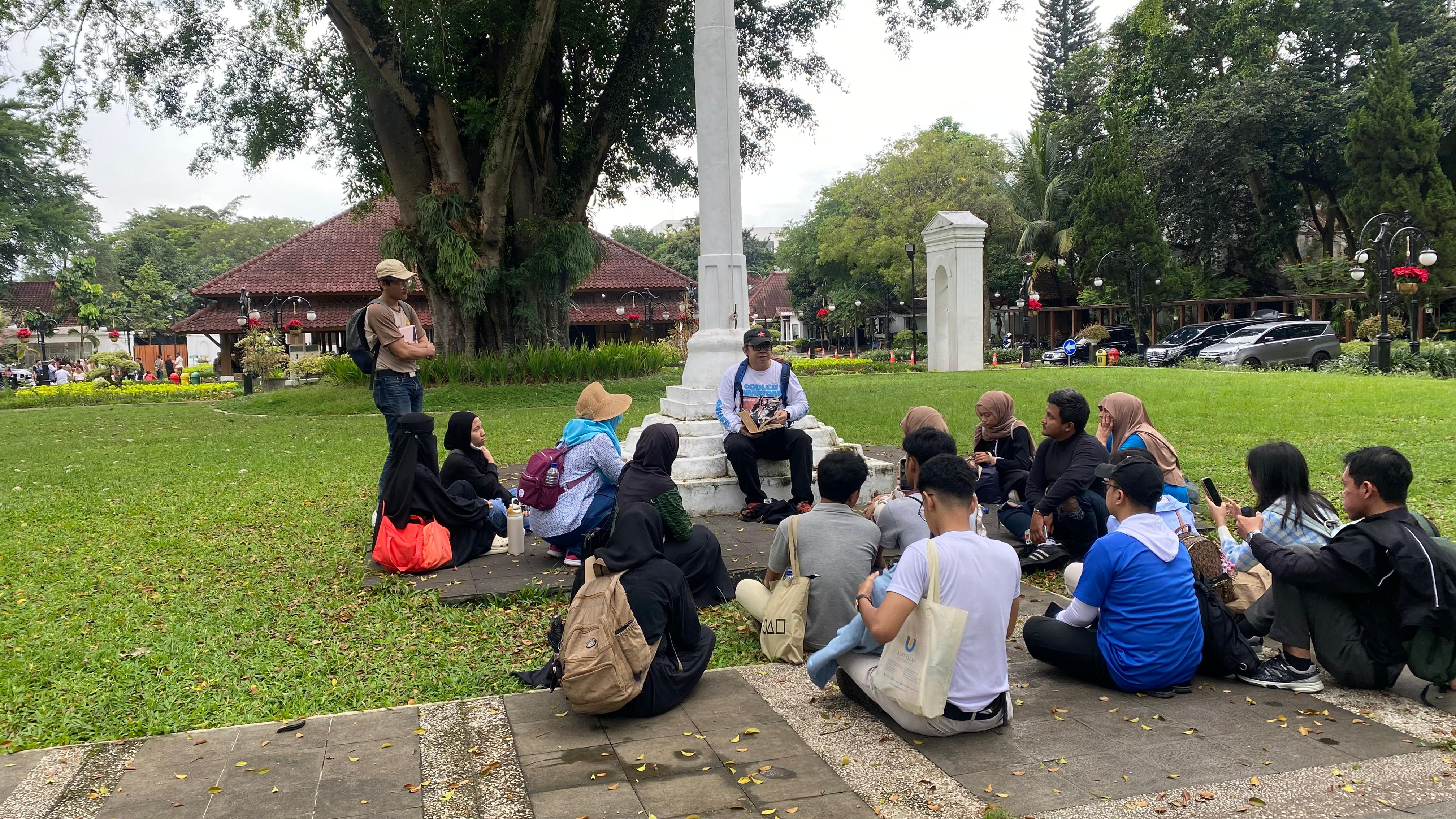 Ngaleut Pendopo hari ini dilaksanakan sebagai bagian dari kegiatan “Cerita Fest” yang diselenggarakan di Microlibrary Asia-Afrika. Ada dua jadwal kegiatan Ngaleut dengan tema yang sama dalam sehari itu. Yang pertama mulai pukul 14.00 dan yang kedua mulai pukul 16.20. Rutenya pendek saja, dimulai dari Microlibrary Asia-Afrika, lalu ke Alun-alun yang sekarang sudah menjadi bagian atau halaman Masjid Agung dan sejak tahun 2001 nama resminya sudah berganti menjadi Masjid Raya Bandung Provinsi Jawa Barat – walaupun masyarakat umum masih menyebutnya sebagai Masjid Agung – kemudian ke area dalam Pendopo, dilanjutkan ke gedung bekas Bioskop Dian, dan kembali ke Microlibrary.