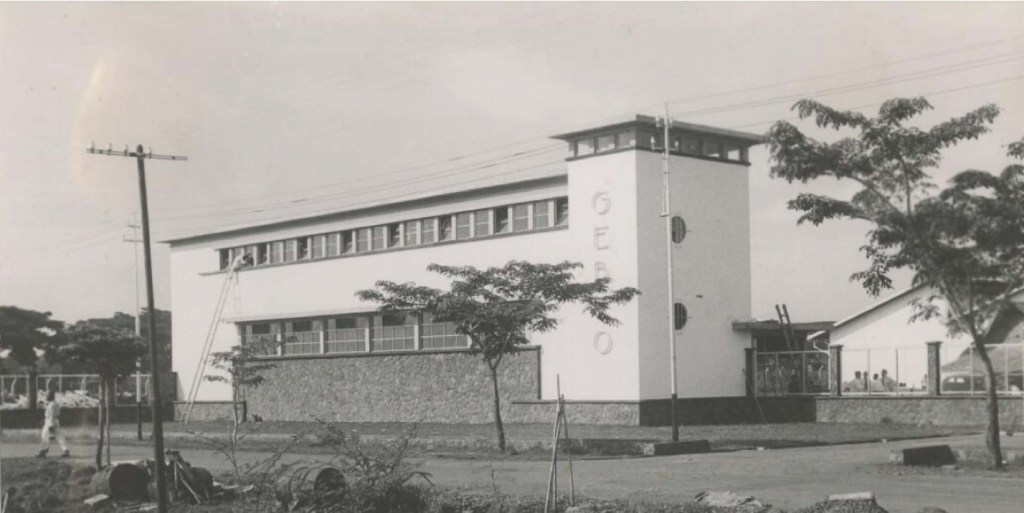 Pekerjaan pembangunan kompleks Central Magazijn GEBEO ini berbarengan dilaksanakan dengan perluasan kantor GEBEO di Groote Postweg. Yang berbeda adalah perusahaan-perusahaan yang terlibat dalam pekerjaannya, selain Hollandsche Beton Mij. Misalnya, perancangan gedung dikerjakan oleh Prof. RLA Schoemaker dan konstruksi oleh perusahaan Kondor.