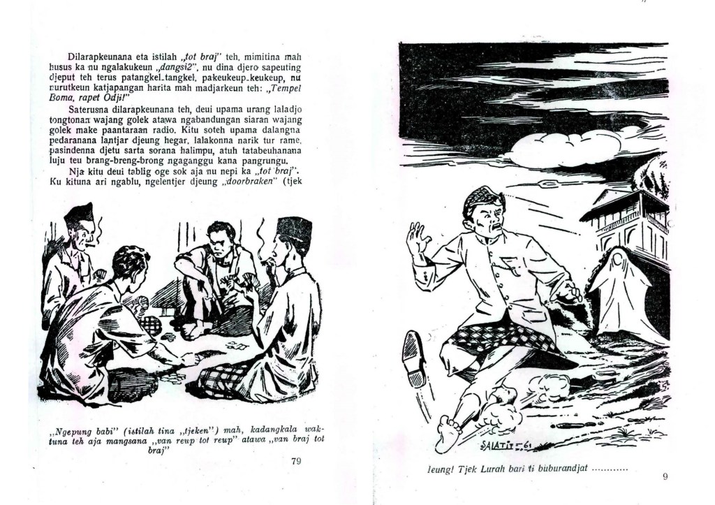 Bab yang terdapat pada buku Jilid-1 ini memang menarik karena banyak mention istilah-istilah atau nama-nama yang dahulu pernah populer dan menjadi keseharian warga Bandung, namun kini sudah mulai kurang dikenal lagi. Misalnya istilah cacing cau untuk para pemain selingan atau pengisi waktu jeda – biasanya anak-anak atau yang belum mahir – dalam pertandingan badminton, atau dulu istilahnya badingdong. Lalu istilah tot bray yang awalnya ditujukan pada kegiatan dansa-dansi sambil berpelukan, tapi kemudian ditambah menjadi van reup tot bray yang maksudnya berkegiatan semalaman suntuk seperti menonton wayang golek. Lebih kurang, dari gelap sampai terang, alias dari malam sampai pagi. Istilah ini juga digunakan oleh Kuncen Bandung, Haryoto Kunto dalam bukunya.